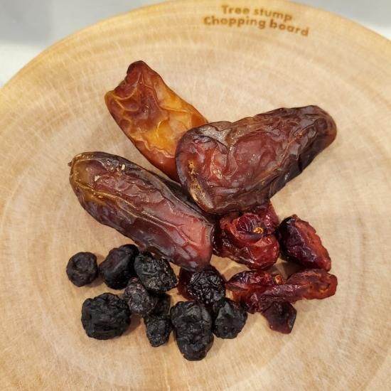 有機のクランベリー、ブルーベリー、デーツといった目に優しいフルーツのドライフルーツのセットです。 漂白剤無添加の本物のドライフルーツを是非味わって下さい。